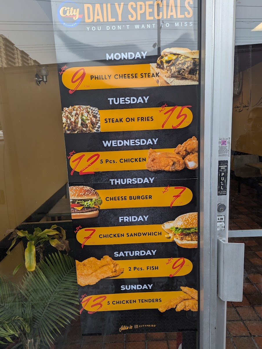 - Fried Chicken: Served with fries and a pop, it's a must-try at CA$9.99.